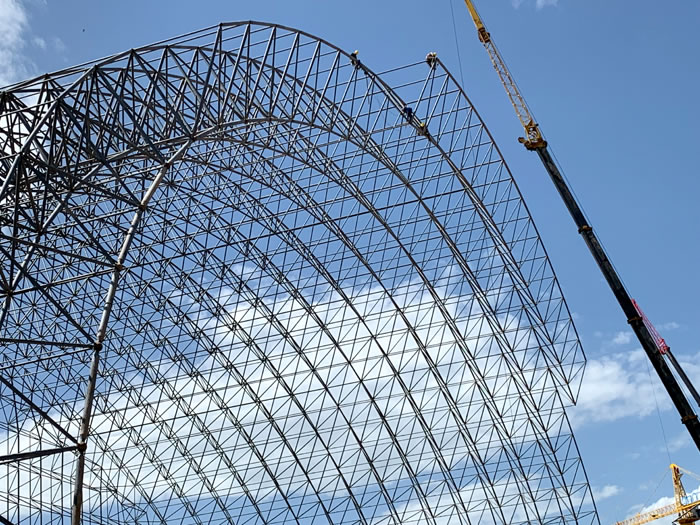 (2)网架加工前应对现场尺寸进行复测,确认无误后方可进行加工、安装;网架制作、运输、安装应遵守《空间网格结构技术规程》JGJ7-2010、《钢网架昆明螺栓球节点》JG/T 10-2009、《钢网架昆明螺栓球节点用高强度螺栓》 GB/T 16939-2016、《昆明钢结构昆明工程昆明施工规范》 GB50755-2012、《昆明钢结构昆明工程施工质量验收标准》 GB50205-2020。